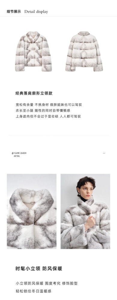 Chiếc áo khoác lông chồn ngắn tay cổ điển này có cổ đứng và vai áo được thiết kế tinh tế. Kiểu dáng ngắn, thoải mái mang lại cảm giác thoải mái khi mặc.