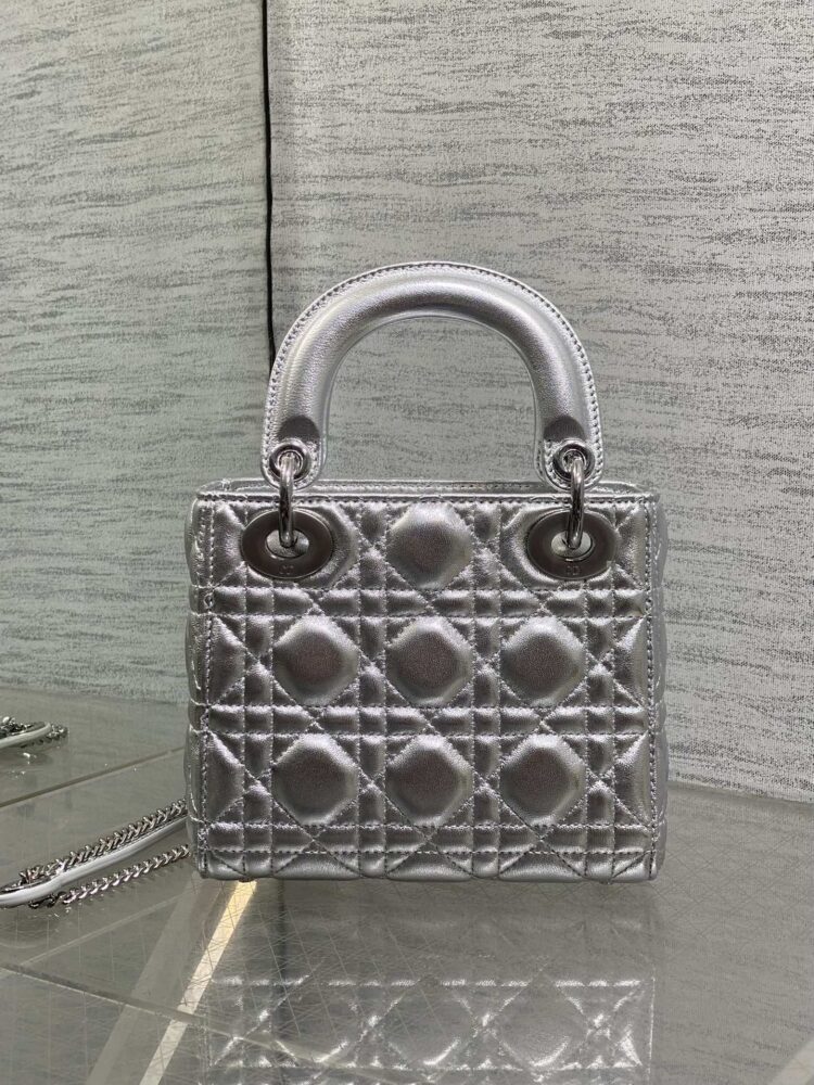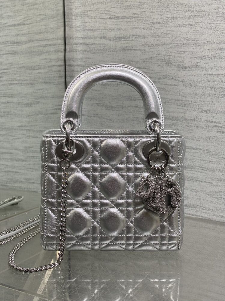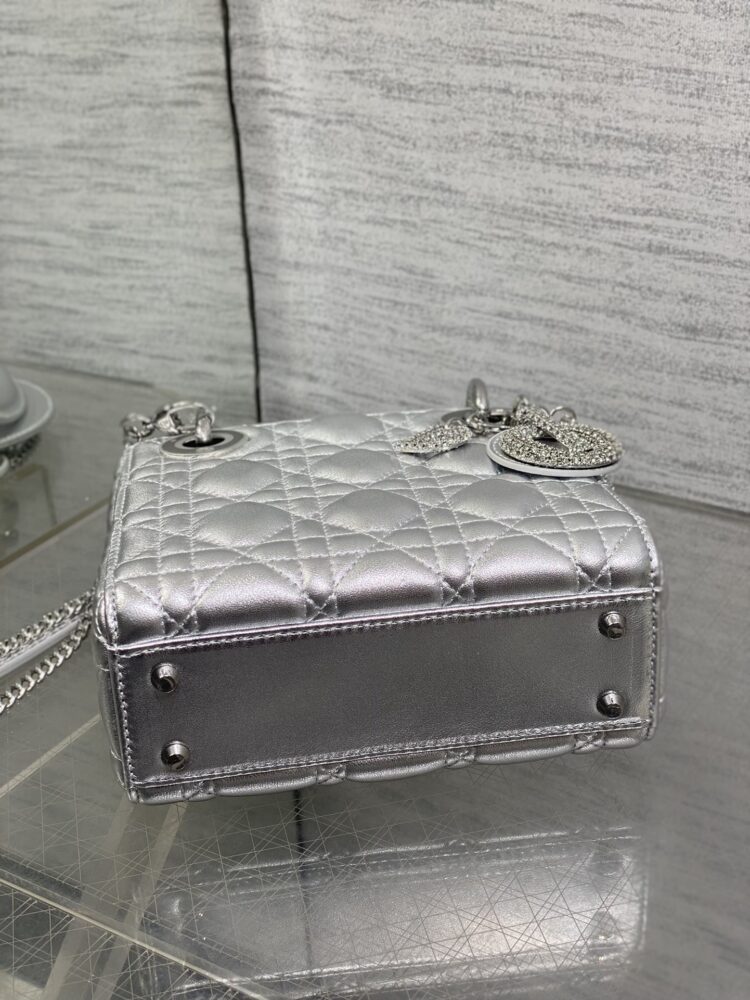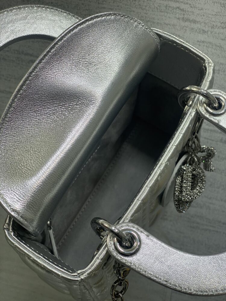 Túi D• ior lady mini da ánh kim charm 3D - Ảnh 5