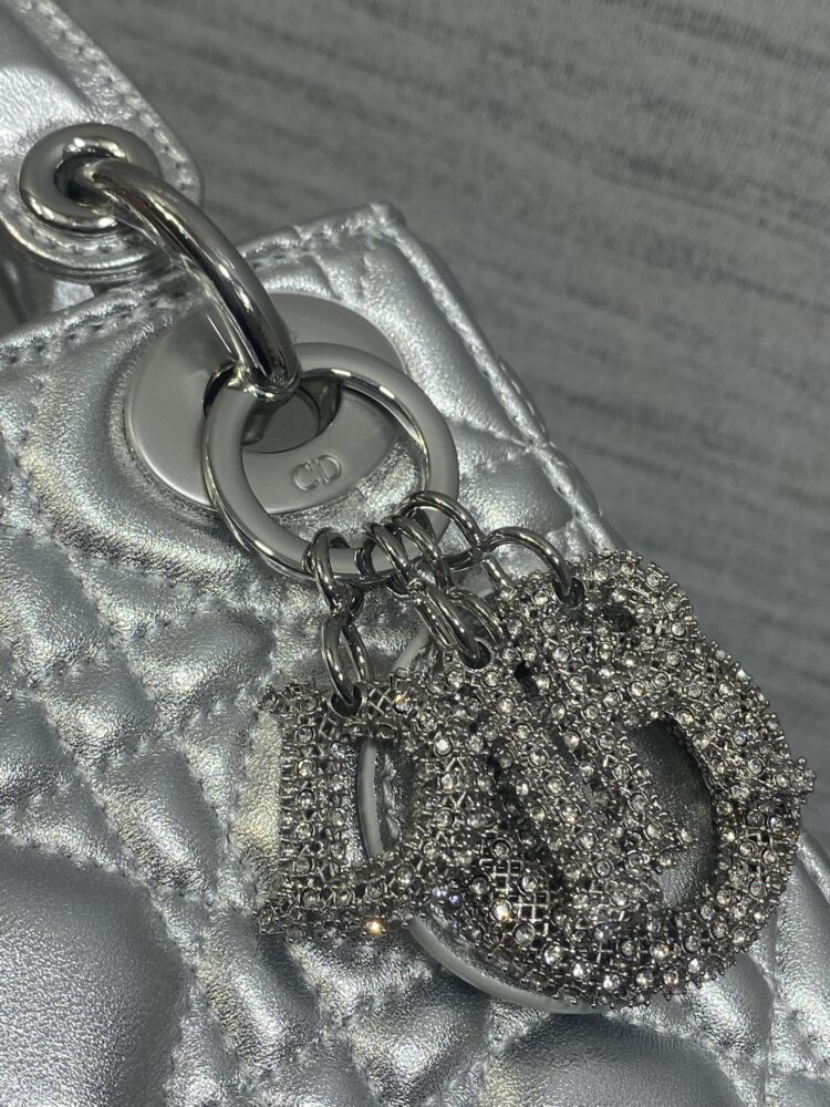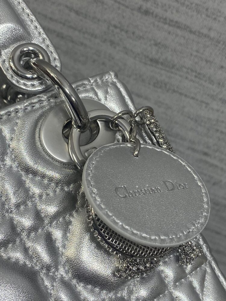 Túi D• ior lady mini da ánh kim charm 3D - Ảnh 8