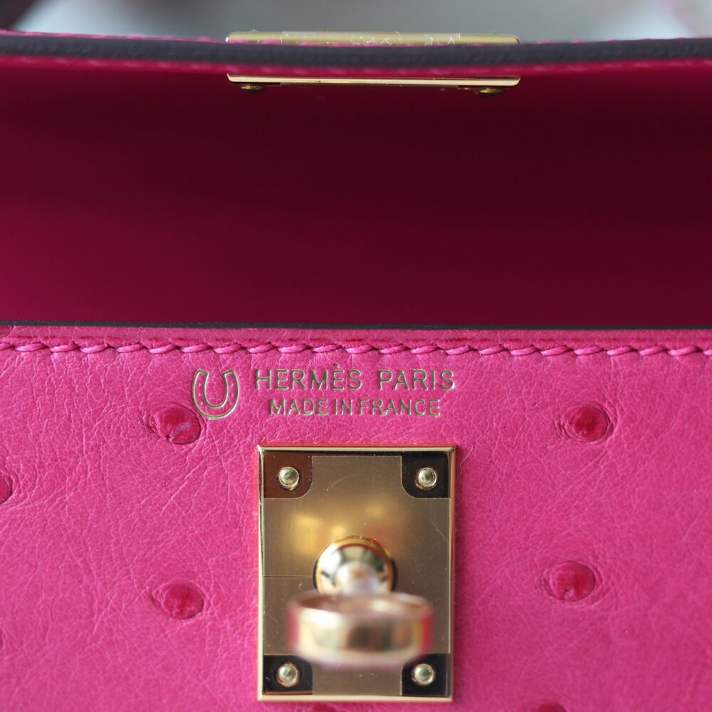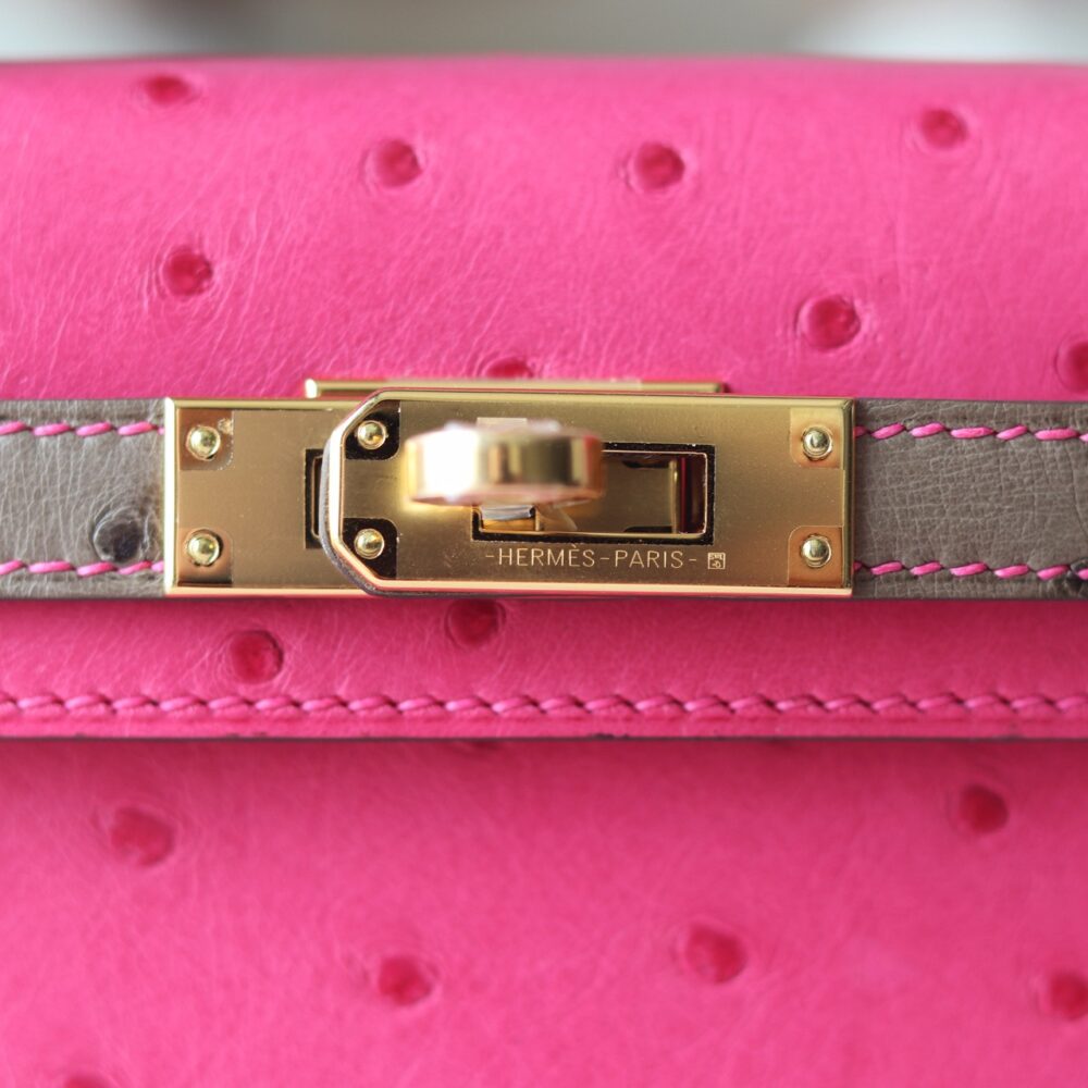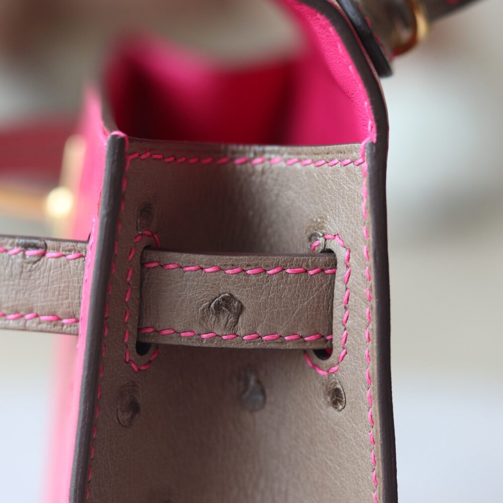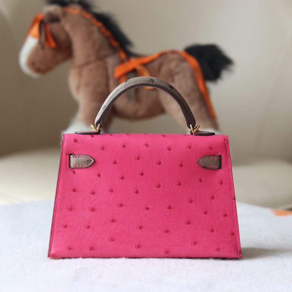V ip Túi H• ermes KL Mini II ostrich Tricolor 5J Fuschia pink M8 Gris Asphalt